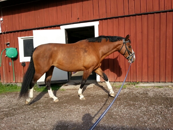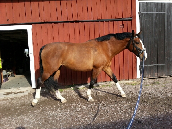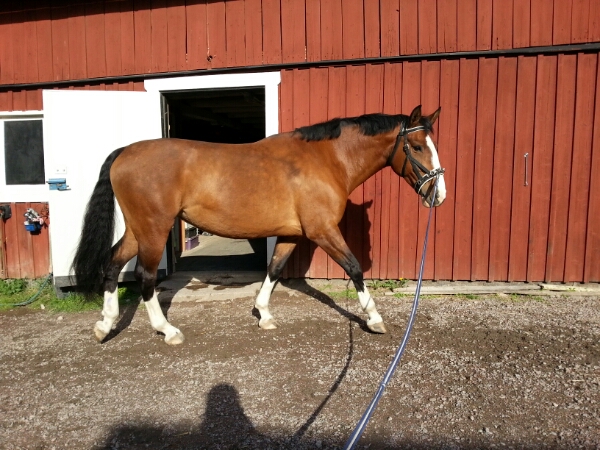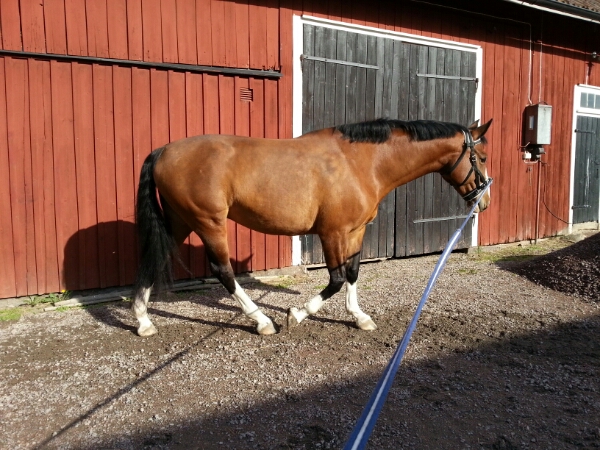 I förrgår blev det en lucka i det annars mulna vädret och det var jätteskönt när solen tittade fram. Jag passade då på att pyssla med hästarna. Bägge fick lite skrittmotion på gårdsplan. Dingo fick sedan lite hjärngympa i form av trickträning. Med Alice tränade jag halter utmed väggen för att få hjälp med att hålla henne rakställd. Det går fortsatt uselt – hahah!