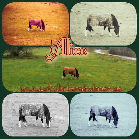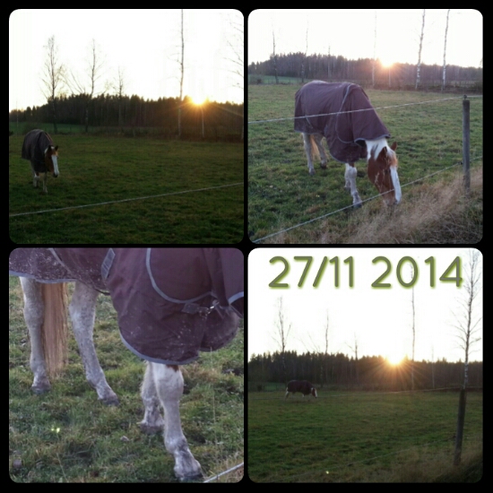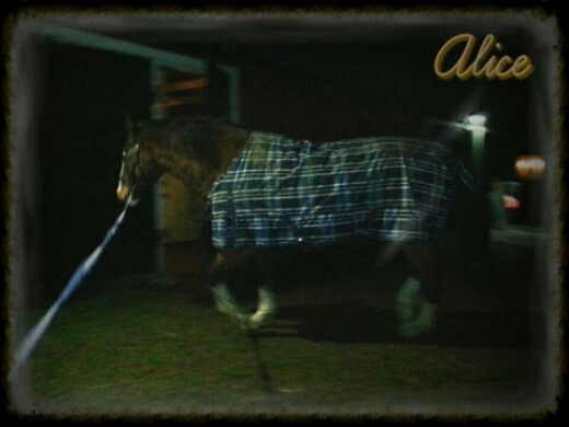 De senaste dagarna har det varit longering på schemat för både Alice och Dingo. Jag har fortsatt med intervallerna på fyra minuter och går även lite fram och tillbaka så att det blir varvat rakt spår, ovala volter och runda volter. Alice har fått jobba blandat skritt och trav de sista åtta minuterna (fyra minuter åt vardera håll), men för Dingo har det bara varit skritt.