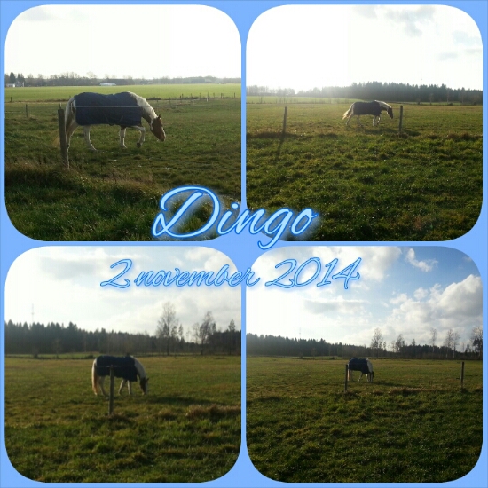 Igår fick Dingo lyxen att ha hela ”fyrkantshagen” för sig själv! Jag har dragit ett extra stängsel för att bilda en gång mellan ”stora hagen” och ”fyrkantshagen” så att inte Dacke, Olle och Dingo kommer åt varandra. Jag vill inte riskera att de fastnar i staketet ifall de skulle busa eller bråka.