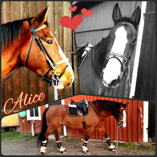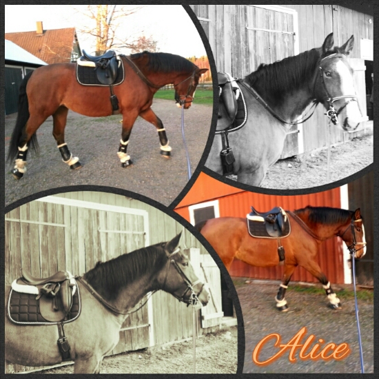 Igår blev det ÄNTLIGEN lite ridning på Alice igen. Det var ett bra tag sedan och jag har verkligen gått och längtat! Som vanligt så började jag med att longera henne lite för att hon skulle få ”gå sig lugn” innan jag satt upp. Det känns bäst att checka av dagsformen (att hon rör sig rent och är sig själv) och dagstemperamentet (att hon inte är alltför galen – hahah!) innan jag rider.
