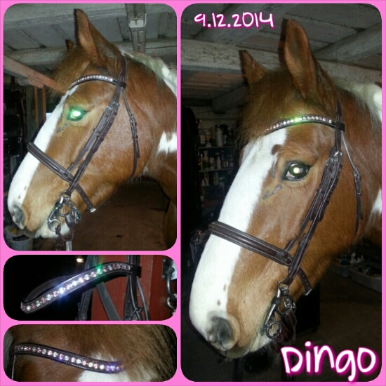 Lippo träns med swarovskipannband (tror att det är Charlies egna) samt gummiklätt babypelham.