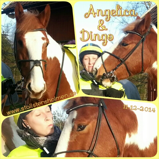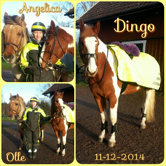 I förrgår red Angelica och jag ut på våra söta, små skäckar och hade faktiskt tur med vädret – bortsett från den kalla blåsten. Jag satte dock på ett ridtäcke på Dingo eftersom det hade regnat snöblandat regn precis innan vi skulle rida, men som sagt så hade vi tur och fick sol hela rundan!