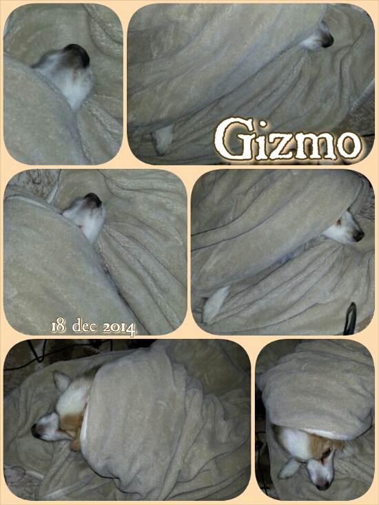 Gizmo myser i värmefilten.