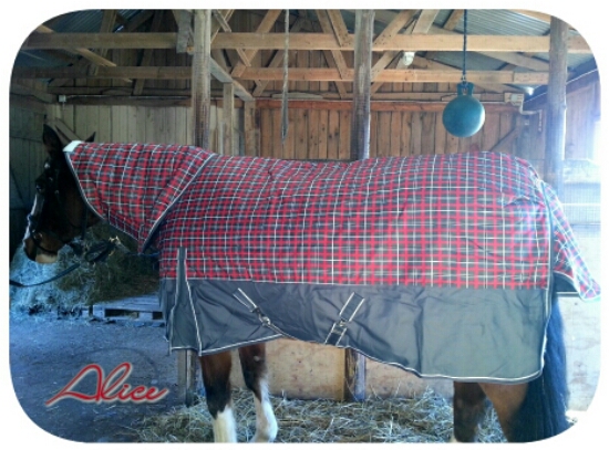 Lilla gubben blev alldeles svettig så efteråt fick han på sig täcket som jag köpte på Eurohorse – ett Horseware Rambo Ionic och över det satte jag Nature Farm fleecefodrat regntäcke med fleecefodrad magplatta.