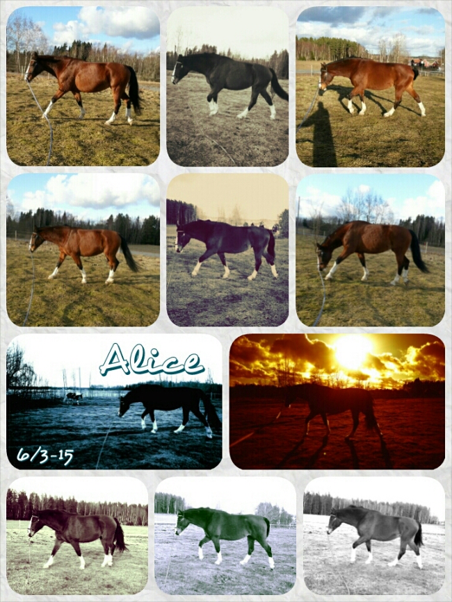 Fredagen den sjätte i denna månad var jag så sugen på att rida Alice att jag trotsade mina ömma höfter och chansade på att det skulle gå. Men, i vanlig ordning så började jag med att longera henne så att hon hade möjlighet att busa av sig ifall hon skulle vilja.
