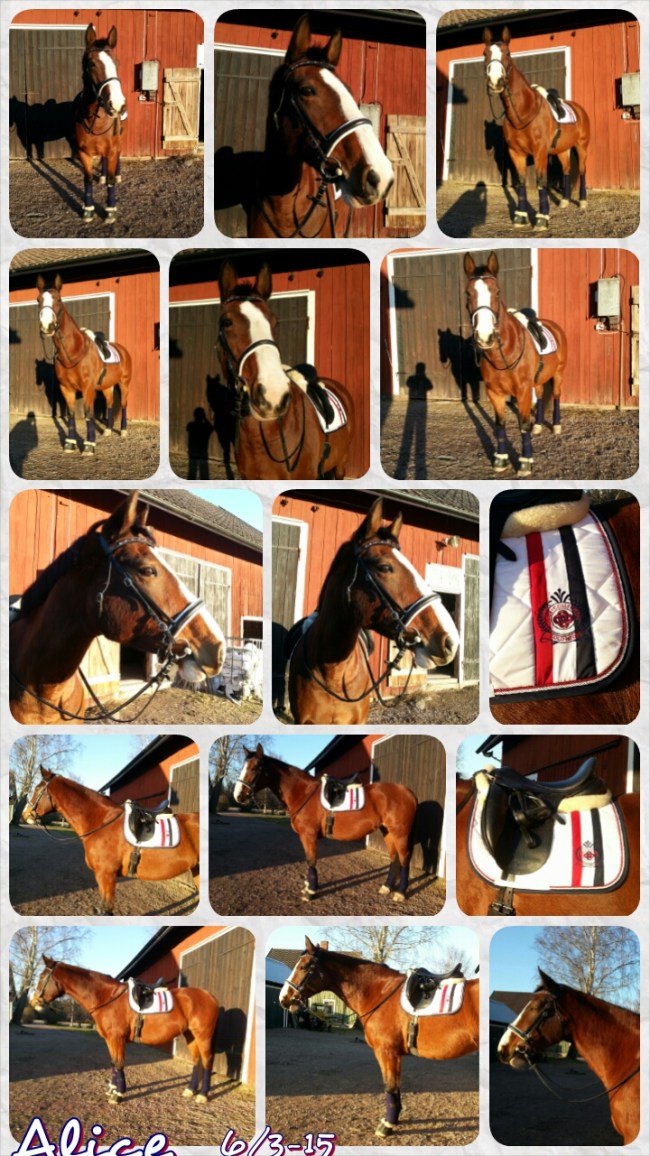 Hon var dock inte särskilt busig den dagen och hon var även lugn och fin att rida! Underbara Alice – jag älskar verkligen att rida henne! Tyvärr höll inte mitt bäcken och mina höfter med mig om den saken, denna gång… Kanske hade det varit bättre att rida i hoppsadeln för att minska påfrestningen?