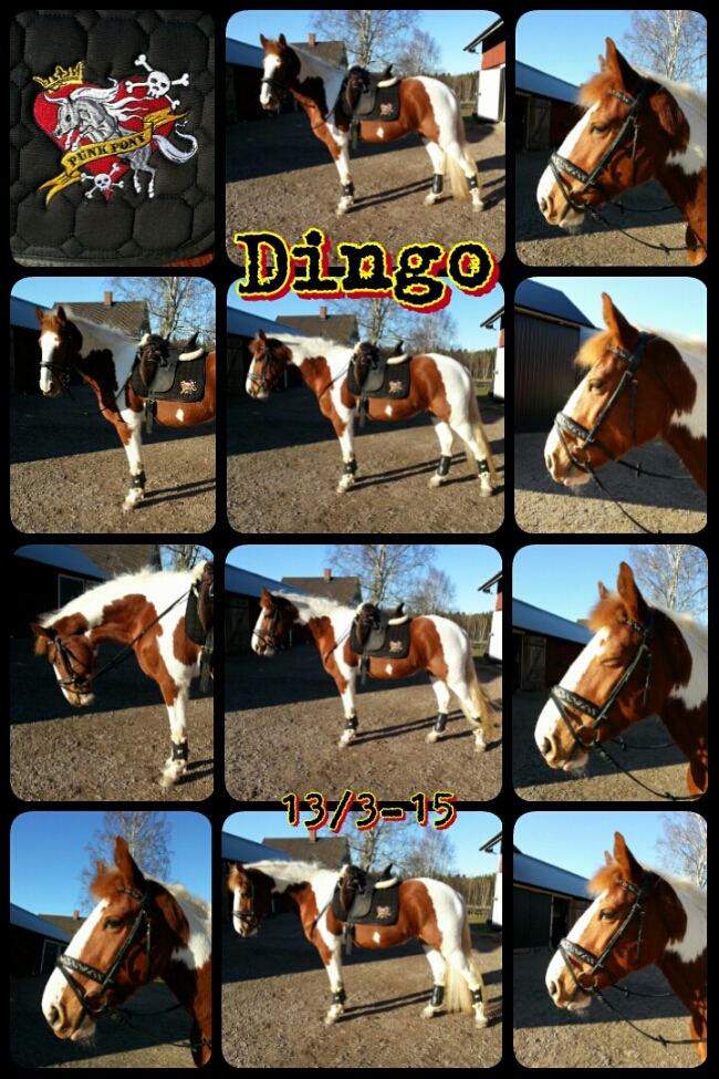 Jaja. Dingo var duktig och snäll i alla fall, under det korta dressyrpass vi gjorde. Det var visserligen bara lättare skritt- och travarbete, men jag kan ju inte kräva så mycket då han inte är så stark än. Dessutom hade jag ju ont i bäckenet och höfterna, så jag kunde inte rida särskilt länge.
