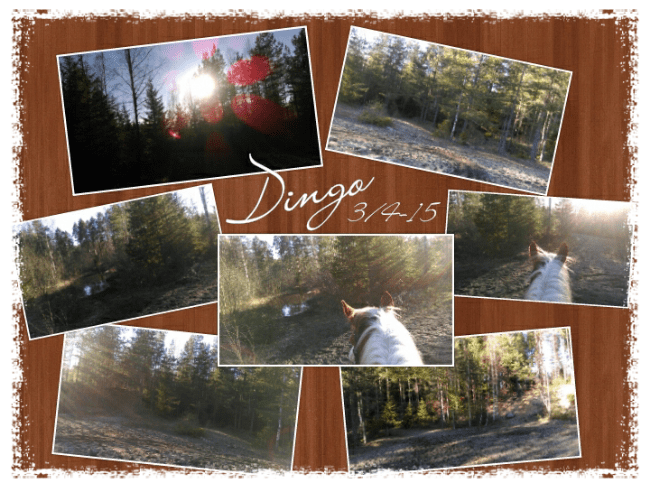 Den 19 april tog jag vara på en fin vårdag och longerade och red min fina bus-stumpa. Jag använde longeringen som uppvärmning i skritt och lite travjogg och kunde därmed komma till ”arbete” relativt omgående när jag satt upp för ridning. Jag red i stora hagen där jag drog nytta av att den är så kuperad, vilket gör den perfekt till klättring.