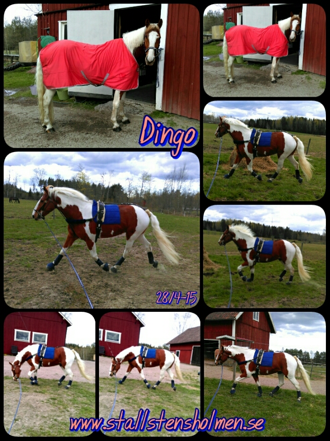Den 28 april longerade jag honom med chambon för att hjälpa honom på traven med att sänka huvudet och höja ryggen istället för att bara springa. Framåtbjudning han ju så det räcker och blir över, men att jobba i låg form är ju jättejobbigt – säger Dingo!