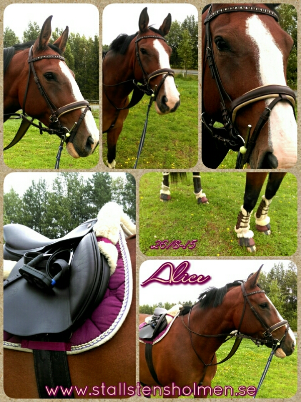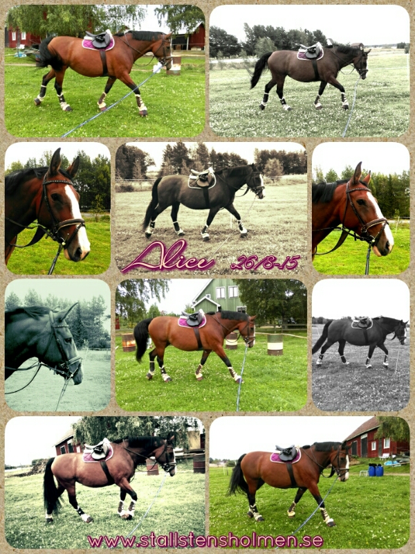 Jag valde Alice eftersom jag inte har ridit henne på en evighet (känns det som i alla fall) så jag var verkligen sugen på att sitta på hennes underbara rygg igen! Jag började som vanligt med lite longering för att känna av hennes temperament för dagen, men hon var väldigt lugn och fin så jag tyckte inte att jag behövde longera så jättelänge innan uppsittning. Hon var lika lugn och fin att rida – helt underbar, till och med! Hon löd min minsta vink, trots att det var så länge sedan! Underbara plutta!