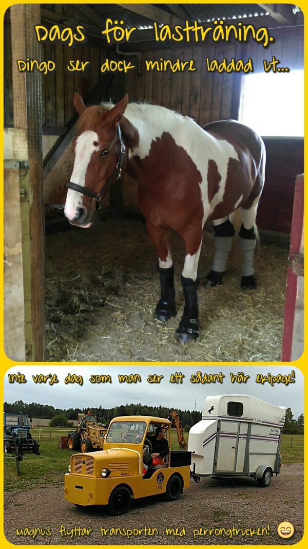 Det var länge sedan som Dingo åkte transport. Jag har Ninas transport stående hos mig så då tänkte passade jag på att lastträna inför onsdagen. Det gick hur bra som helst!