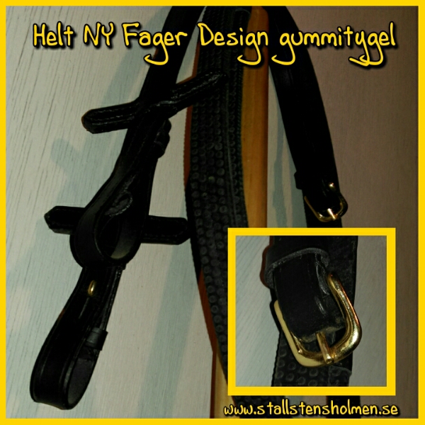 Färgen är New Market, men har med användning och smörjning mörknat till mörk cognac. Dock är tyglarna fortfarande ljusare än tränset. Gummit på supergriptyglarna har slitits bort så de är mer som vanliga vävribbtyglar nu.