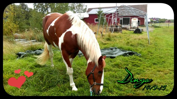 I måndags fick Dingo lite miljöträning och samtidigt äta lite gräs. Såväl rörelse, stimulans som gräs var mer än uppskattat av lille Dingo som har blivit pigg och uttråkad av sin boxvila. Till min stora glädje så är han redan haltfri i skritt – trots att han inte får Metacam längre!