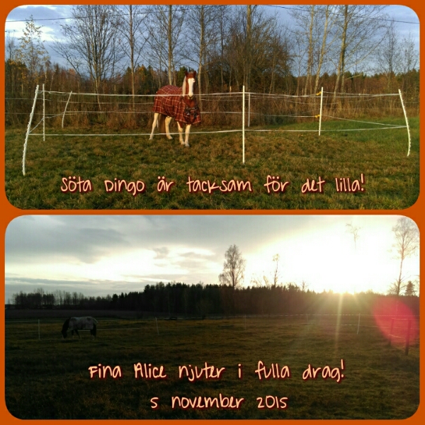 Härlig känsla av vår i november? Ja, det hade jag faktiskt idag. Djuren verkade också stortrivas ~ särskilt hästarna, som fick gå nakna och njuta!