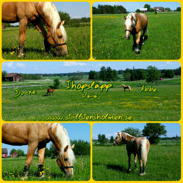 Igår släppte vi ihop Abbe och Dacke! Vi väntar dock några dagar innan vi släpper in Nisse till dem då vi är rädda för att han ska hamna i vägen för de större hästarnas potentiellt kraftiga sparkar.