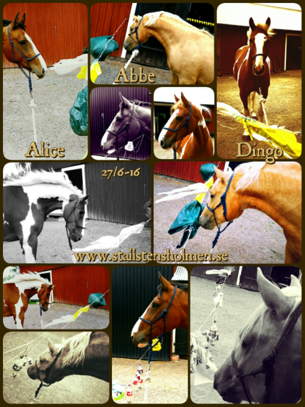 Jag nyttjade dagens kraftiga vindar till att toleransträna hästarna – och jag måste säga att jag har toleranta hästar! De var jätteduktiga – alla tre. Alice och Dingo har visserligen sett ”skrämsellinan” en gång förut, men det var ju ändå ett tag sedan.