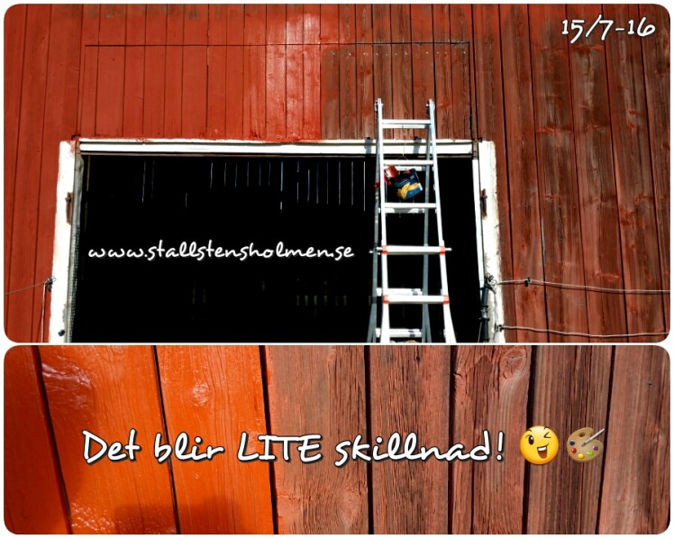 Det blir LITE skillnad! 15 juli 2016 Vi är igång med målning av ladugården. Det var mer än välbehövligt! Visst blir det skillnad?