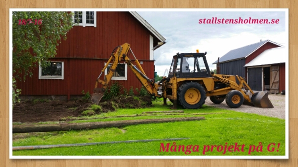 Vi har verkligen mycket på gång denna sommar. Vi har påbörjat panelbyte, tilläggsisolering samt målning av huset och även målning av ladugården. Idag påbörjade Magnus dessutom arbetet med att göra en grusad plats för till exempel biltvätt.