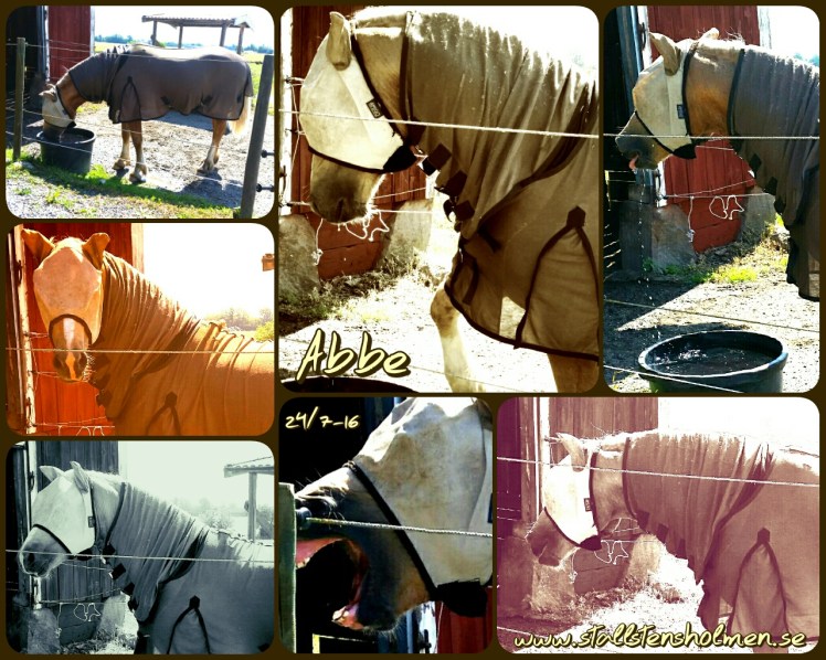 På bilden nedan har Abbe en Horseware Amigo flughuva samt ett flugtäcke som är köpt på Börjes.