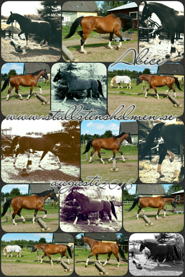 Den senaste tiden har det inte blivit någon ridning på Alice då jag har velat fokusera på att hon ska stärka ryggen – utan ryttare. Så det har varit longering och löslongering över de upphöjda stockarna, samt lite klättring, för hela slanten. Förhoppningsvis ger det önskat resultat!