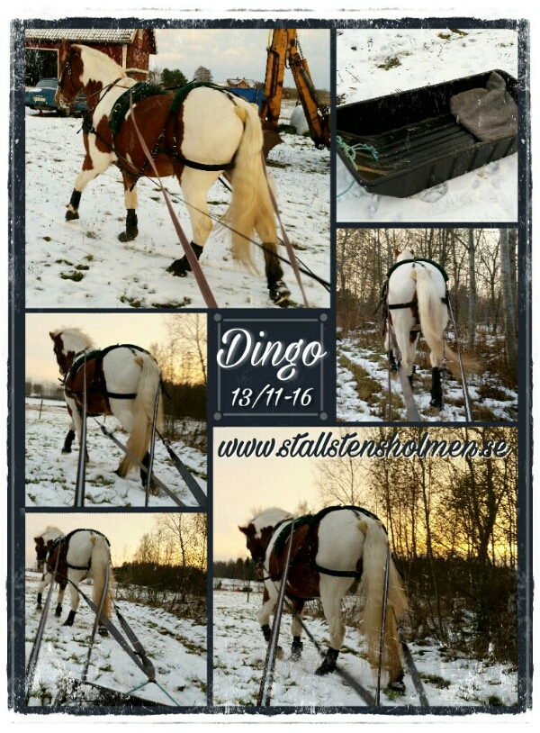 I söndags – innan snön smälte bort – passade jag på att köra Dingo med pulka. Det var jättekul och han var jätteduktig! Jag var tvungen att filma lite och här är resultatet: