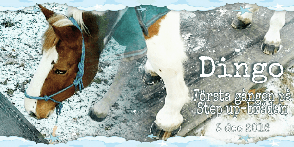 Sist ut (av mina hästar) att testa ”Step up-brädan”/rampen var Dingo. Han var lika duktig som de två andra! Hur cool som helst! Kolla videon så får ni se.