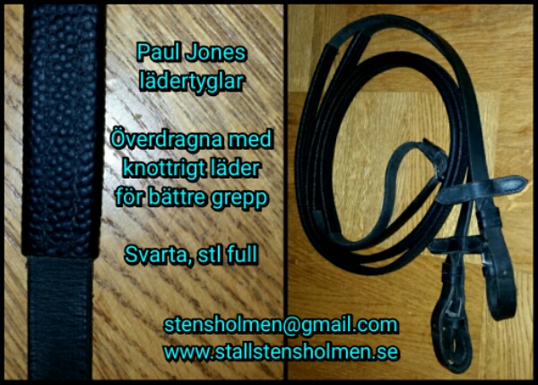 Paul Jones lädertyglar överdragna med knottrigt läder för bättre grepp. Svarta, storlek full. Endast använda ett fåtal gånger, så är i mycket bra skick!