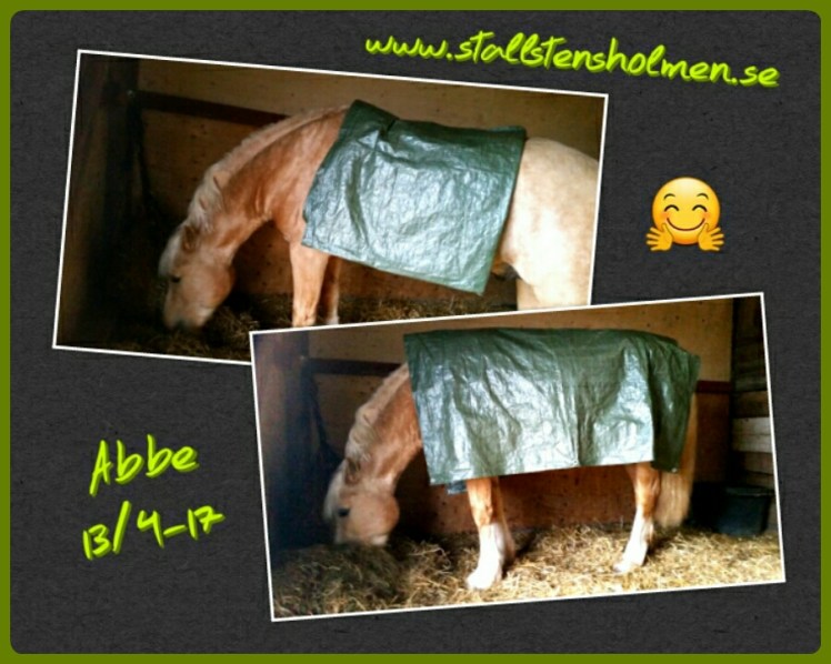 Först var han lite skeptisk, men nosade ändå försiktigt på den. Sedan ville han smaka på den – hahah! Efter det fick jag klappa honom med den och därefter kunde jag lägga den över honom.