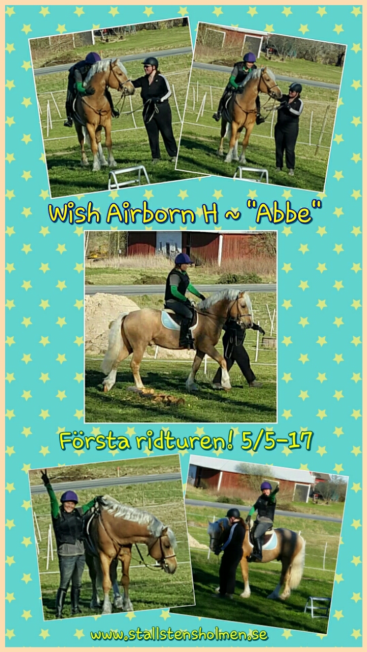 Idag (5 maj) tog jag steget längre och hoppade upp helt och hållet på honom! Han var supercool! Det bekom honom inte alls att jag satt där uppe. Han tog även skänkel och tygel på ett bra sätt.
