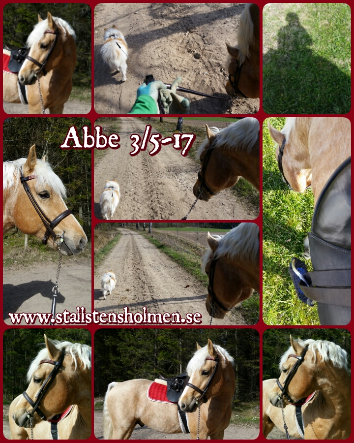 Väl hemma igen så hängde jag på honom igen. Denna gång med sadel och jag testade även att lägga vikt i stigbyglarna. Han var precis lika oberörd även denna gång! Bästa Abbe!