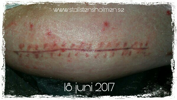 Det blev bara värre och värre under gårdagen, så idag stod jag inte ut längre utan var tvungen att ta av förbandet. Huden var röd och knottrig och det hade även satt sig på själva ärret.