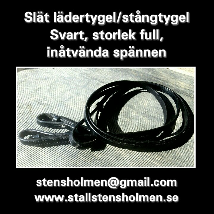 Svart, slät lädertygel/stångtygel. Storlek full. Inåtvända spännen.