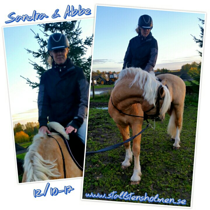 Idag var Sandra återigen här och satt upp på Abbe. Idag gick det superbra! Inga protester – inga tecken på obehag!