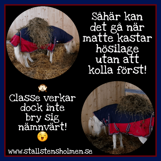 Så kan det gå… 20 mars 2018 Det blev visst lite tokigt när jag kastade in hösilage till Classe utan att kolla vart jag kastade!