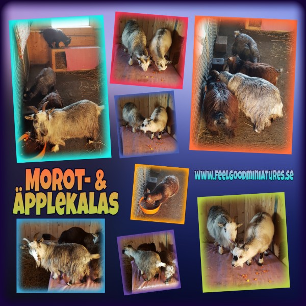 Godisgrisar Publicerad den 16 januari 2019 av Feelgood Miniatures Några bilder på getgänget när de hade morot- och äpplekalas. Väldigt uppskattat av de goa godisgrisarna!