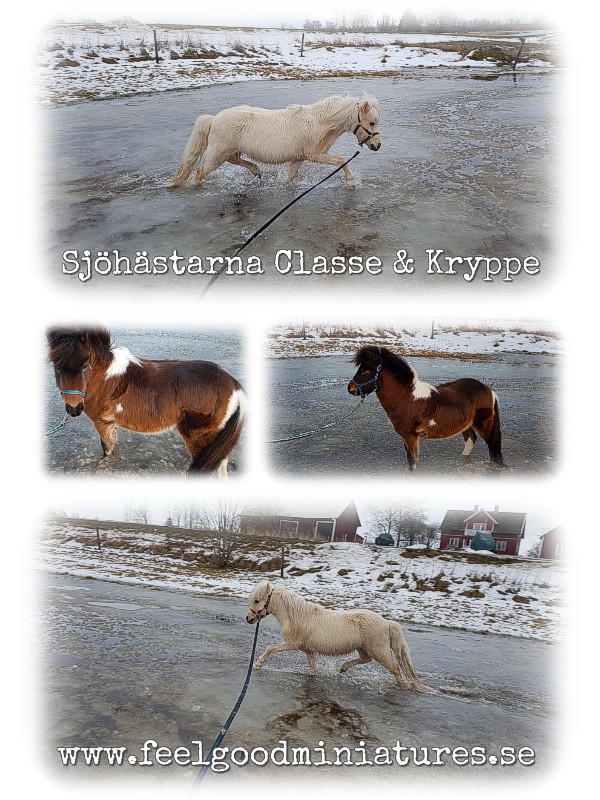Om Mony och Queenie är snöhästar så är Classe och Kryppe sjöhästar! I alla fall för tre dagar sedan när all snö smälte och vi fick små sjöar hemma på gården. Perfekt träningstillfälle!