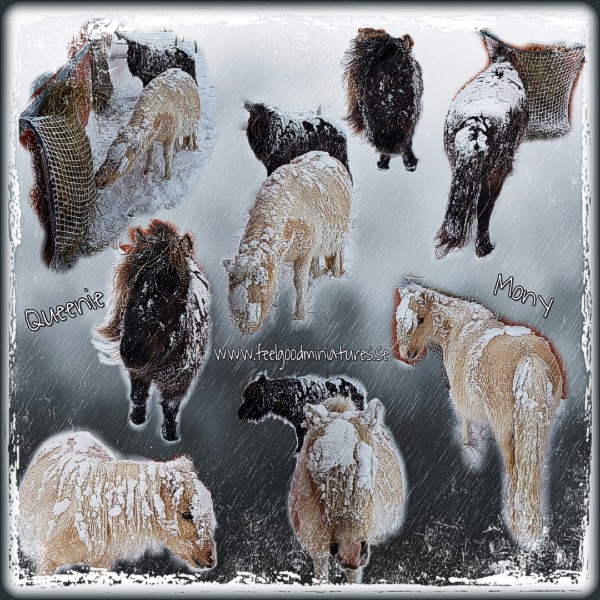 Det finns sjöhästar och så finns det snöhästar! Eller, så är det bara Mony och Queenie som har trotsat snöstormen… Heheh…