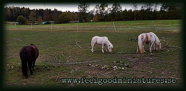 Vi har fått njuta av flera fina höstdagar. Härligt! Det tycker djuren också. På bilden (som tyvärr är allt annat än bra. Jag måste se mig om efter en bättre app!) ser vi en glad och busig Gizmo samt det goa getgänget som är i full färd med att beta.