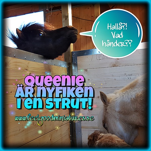 Jag fick syn på den här roliga bilden på Queenie och jag tror inte att jag har delat den förut. Bilden togs i april – när Knasen är precis nyfödd. Queenie var jättefrustrerad över att hon inte fick vara med i boxen och undersöka den lille plutten (som helt plötsligt befann sig där)! Hahah – stackars nyfikna och sociala stumpan!