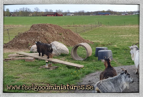 Magnus var snäll och gav getterna en stor jordhög och en gungbräda! Jordhögen blev omedelbart populär, däremot så var alla utom Emmie väldigt skeptiska mot gungbrädan – haha!
