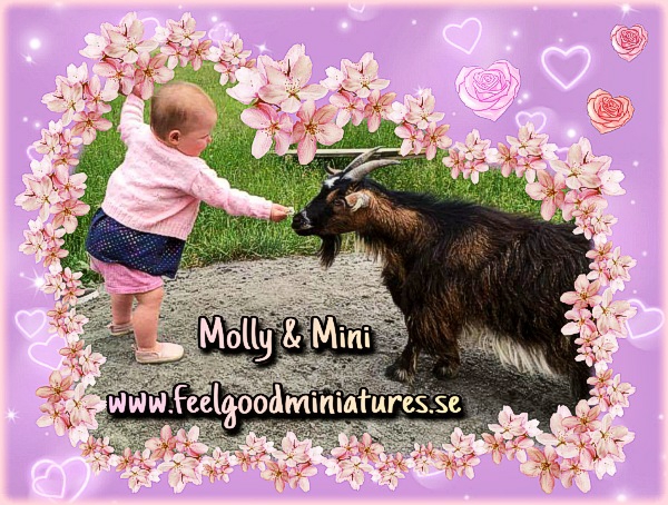 On the picture we see my niece Molly offering Mini (Feelgood Esmé) a clover flower. However, Mini rejected the flower – hahah! But, at least it made for a cute picture.