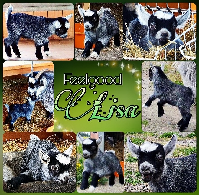 Feelgood Lisa är en mörkgrå getkilling med en stjärn och vitt på öron, ben och runt nospartiet. Lisa är den förstfödda av Feelgood Ellas tvillingar. En rar flicka som också kan vara tuff och äventyrslysten. Hon är den enda killingen som fick vita tecken på benen – någonting som hon ärvt från sin mormor Estelle.