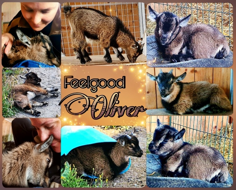 Feelgood Oliver är en brun (med lite svart och vitt) bockkilling. Han är den andra av Feelgood Esmés tvillingar. Precis som sin bror (och mamma) så är Oliver super-rar och kelig, men har också ärvt Esmés ”liten men tuff”-mentalitet och drar sig inte för att mucka gräl med de större pojkarna!