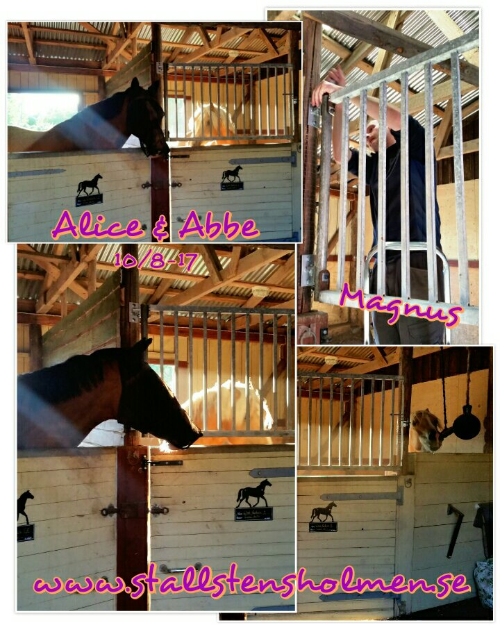 Häromdagen blev Magnus färdig med fästena och låsen till gallret så nu är det äntligen på plats! Det blev jättebra! Gallret fäster i mittstolpen och går således att svänga över från ena boxen till den andra! Supersmidigt!