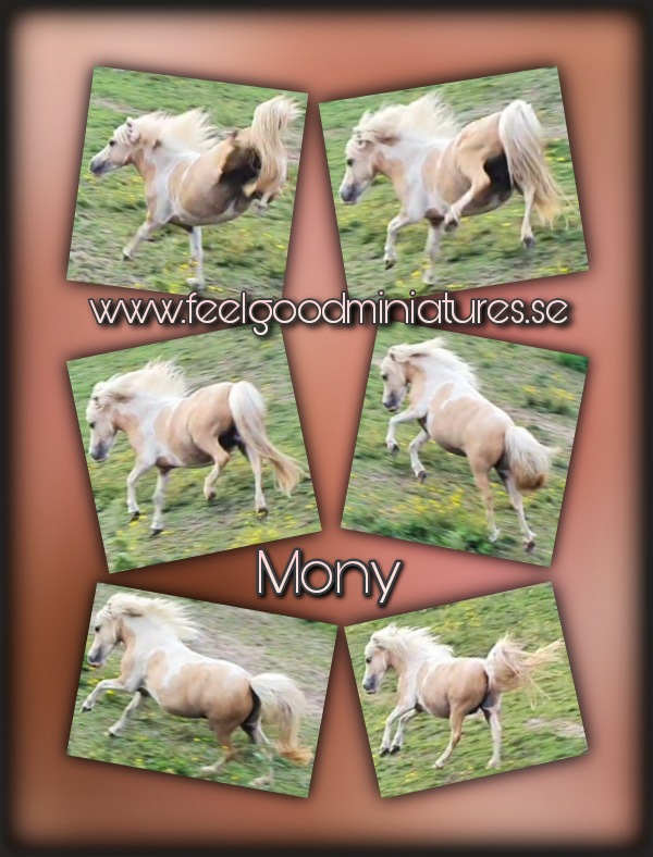 ”Mony” är en vacker och feminin dam med mycket fin stam. Lite försiktig av sig, man får förtjäna hennes förtroende, men efter det så är hon väldigt mysig. Hon är även barnvänlig. Hos förra ägaren var hon ”barnponny”.