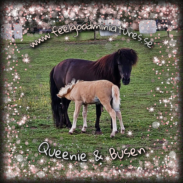 ”Queenie” blev snabbt en favorit här på Stensholmen då hon är en så mysig, kelig och kärvänlig liten tös. Den 31 maj 2020 fick Queenie sitt första föl, en hingst efter Lucky Four Black Velvet Classicgold (”Classe”). Han fick namnet Feelgood Classic King Of Hearts (”Busen”).