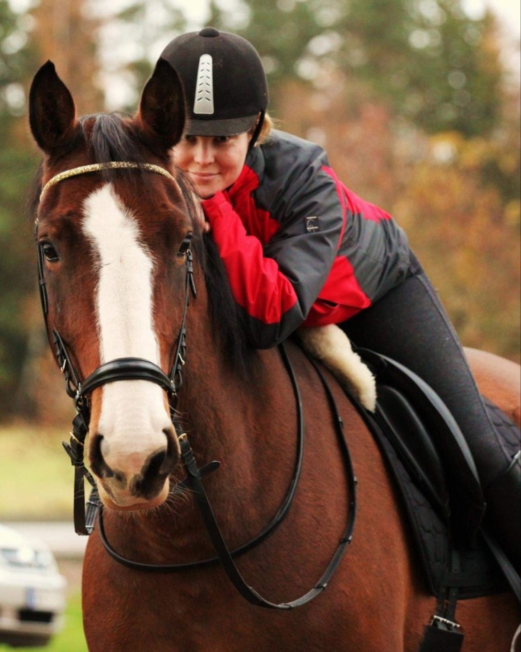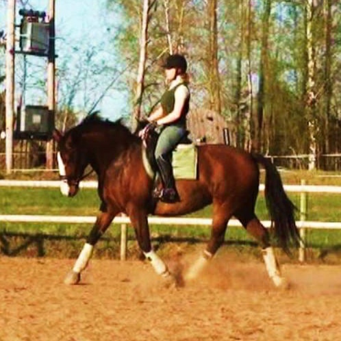 Hon vill väldigt gärna vara till lags och om hon inte förstår vad man vill att hon ska göra så kan hon bli upprörd. Hon är väldigt känslig, på gott och ont, för när hon förstår och är lugn så lyssnar hon på minsta vink och är FANTASTISK att rida/jobba med, men kan också bli ”reaktiv” om hon t.ex. blir rädd för något, om det är något som inte känns bra (t.ex. illasittande sadel) samt när hon har vilat en längre period och ska sättas gång. Det är därför att rekommendera att sätta igång henne med longering, tömkörning och promenader innan man sitter upp. När hon inte längre har överskottsenergi så är hon helt underbar att rida! Nu har hon tyvärr stått sen april 2023 då jag inte kan rida längre.